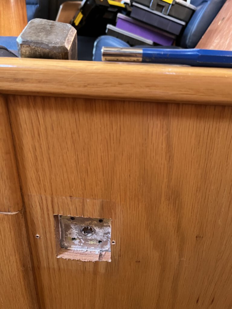 Afterward, those same lines — led to the winches — became extremely useful. They gave us precise control to guide and position the centerboard carefully back under the boat for reinstallation.