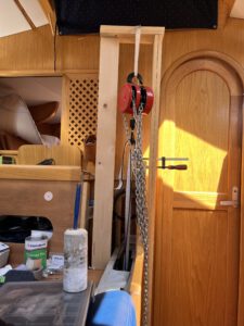 With the wooden crane standing the next step was to attach the chain pulley to your new centerboard ring.