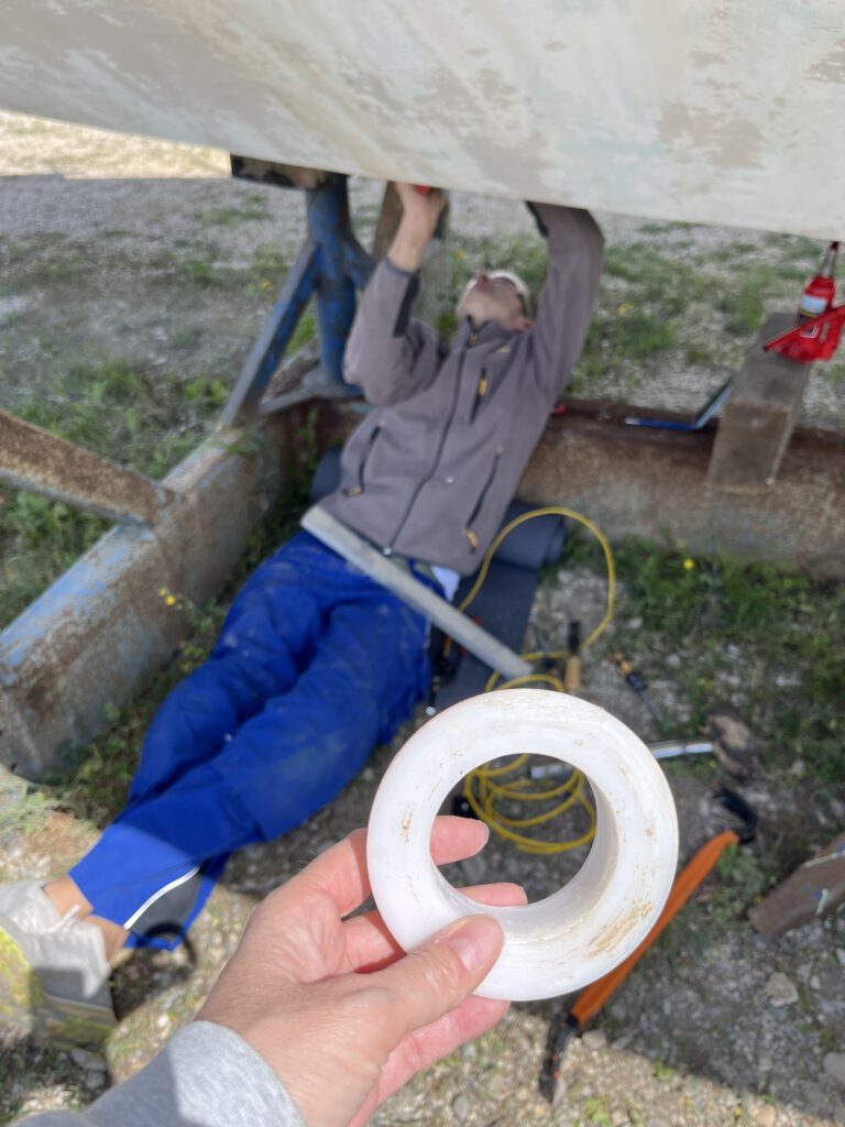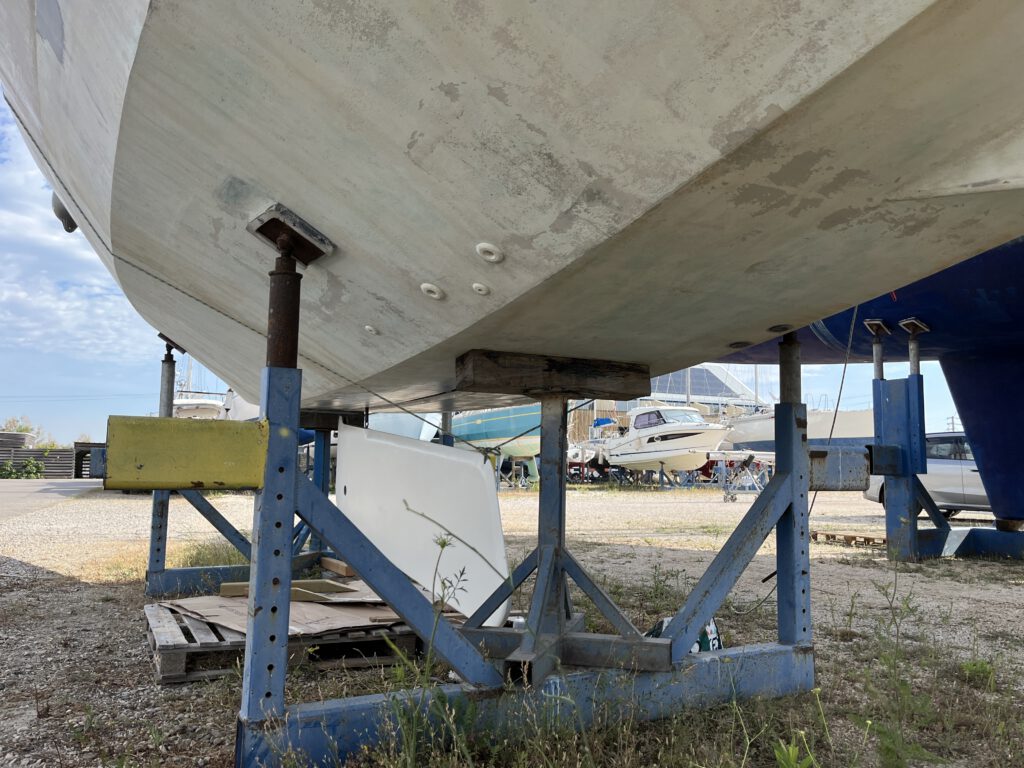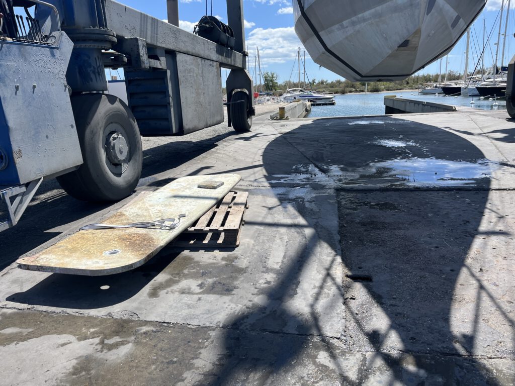 To finish the job properly, we had to ask the yard to bring in the port lift and raise the boat higher.